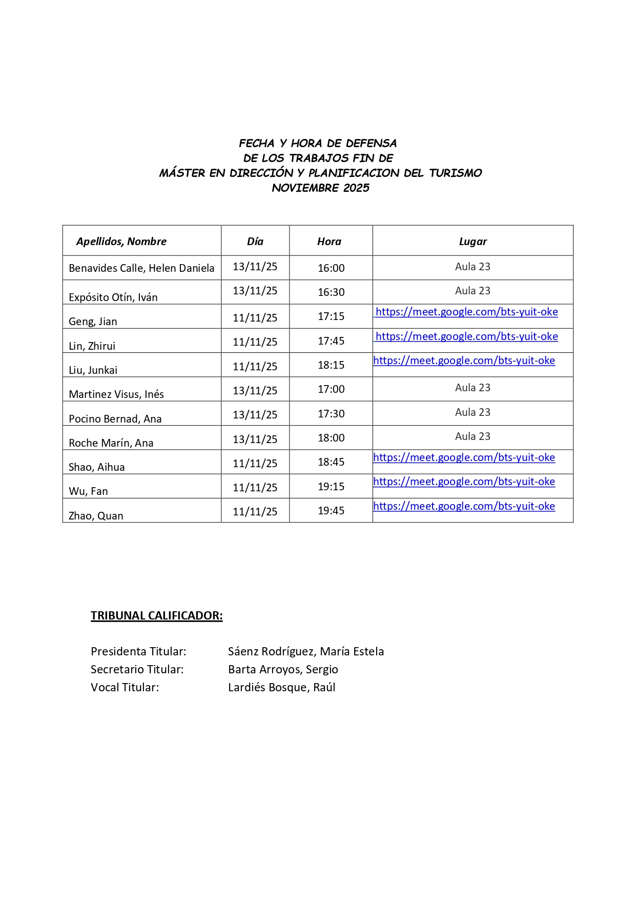 El Máster es una muy buena oportunidad para ver el turismo desde diferentes perspectivas y culturas, pues permite compartir diferentes puntos de vista con estudiantes de otras nacionalidades.